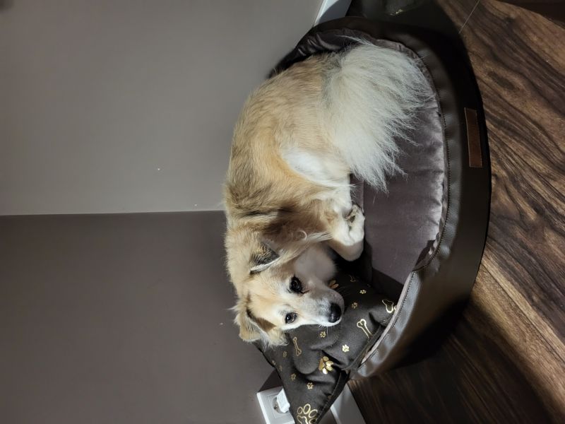 Psy lubią tak jak ludzie mieć pod głową "Jasiek". Ta poduszka powinna mieć cieńszy wsad i byłaby
